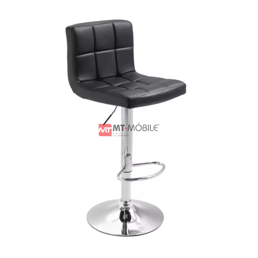 Material: Couro ecológico e base cromada – Possui assento giratório