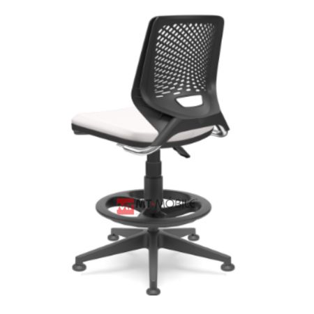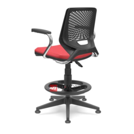 O design moderno da Beezi Caixa reflete-se no encosto e assento, desenhados para oferecerem ergonomia. Compostos em material termoplástico de engenharia, presente também nos apoios de braço, esse modelo da linha possui elevação e apoios para pés, indicados para bancadas mais altas e outras aplicações práticas que exigem acomodação em uma posição elevada.