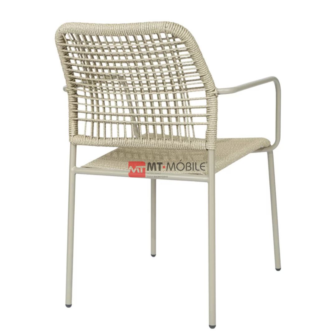 A cadeira Copacabana é perfeita para áreas externas, com design moderno e descontraído. Possui estrutura resistente em quatro diferentes tons e revestimento em corda náutica, oferecendo estilo e durabilidade para diversos ambientes.