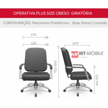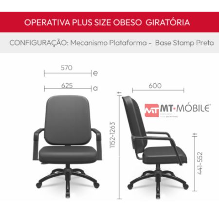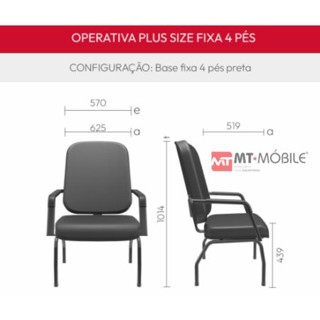 Seguindo o conceito dinâmico da Linha Operativa Plus, o novo modelo Operativa Plus Size criado para atender pessoas com sobrepeso, amplia a versatilidade deste conjunto. Estrutura disponível pintura preta ou pintura cromada.